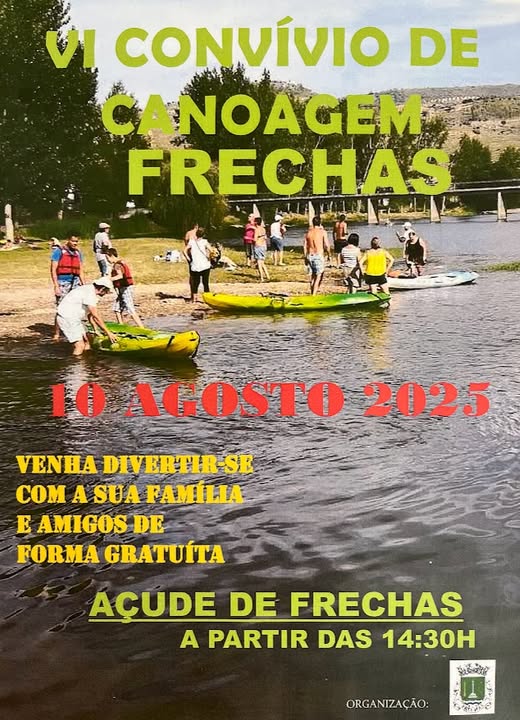 Convívio de Canoagem na Praia Fluvial de Frechas. Evento gratuito para disfrutar em família e/ou com amigos.
